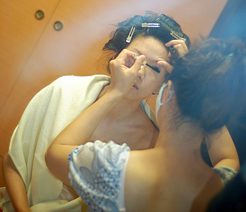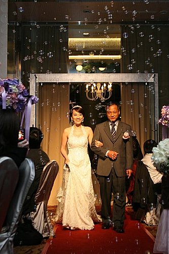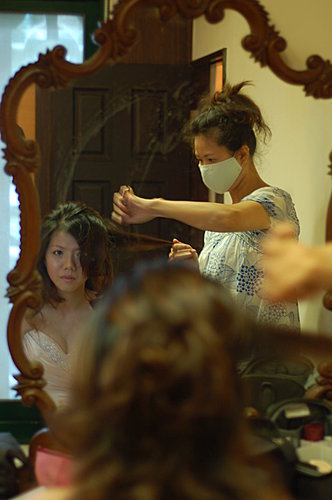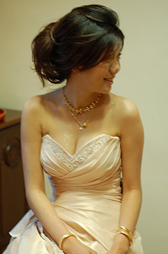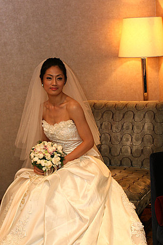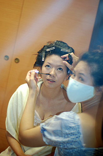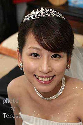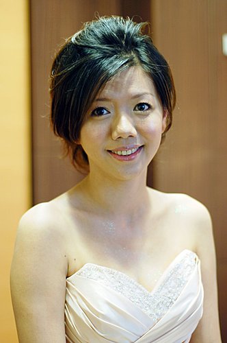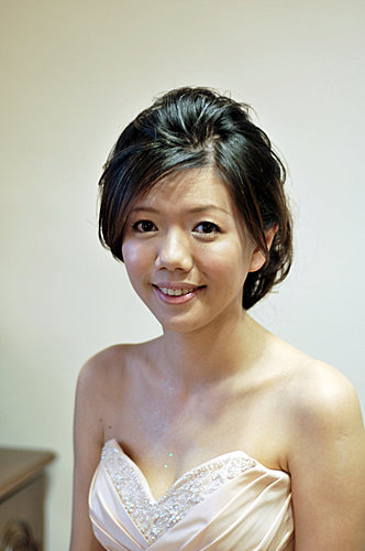 我一直沒和昭宜見過面或談過電話 只有收過一次e-mail 還只是禮服照片 所以到婚禮當天 我只能把收的片斷訊息和禮服照片來設計造型 還好昭宜是一位真的知道自己要什麼的新娘 她所要的簡單和我所想的一樣...所以儘管是婚禮當天才見面 我們很有默契的逹成共識