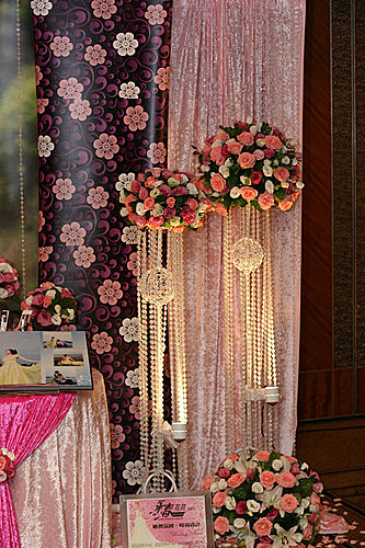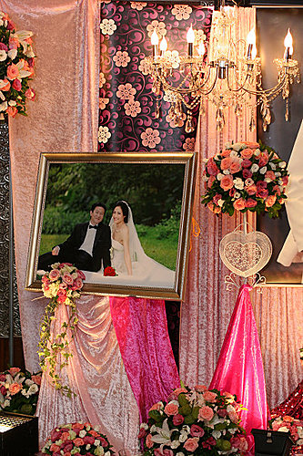 收禮桌全都用粉色玫瑰佈置 想不到現場看 超美的