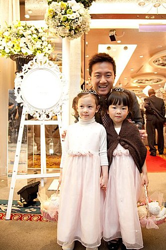 可愛的小花童和新郎的合照