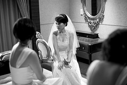 喜來登的新娘休息室很大 也很舒服 入場前大家在一旁搞笑 排練 昭宜整個放鬆下來 笑得很甜
